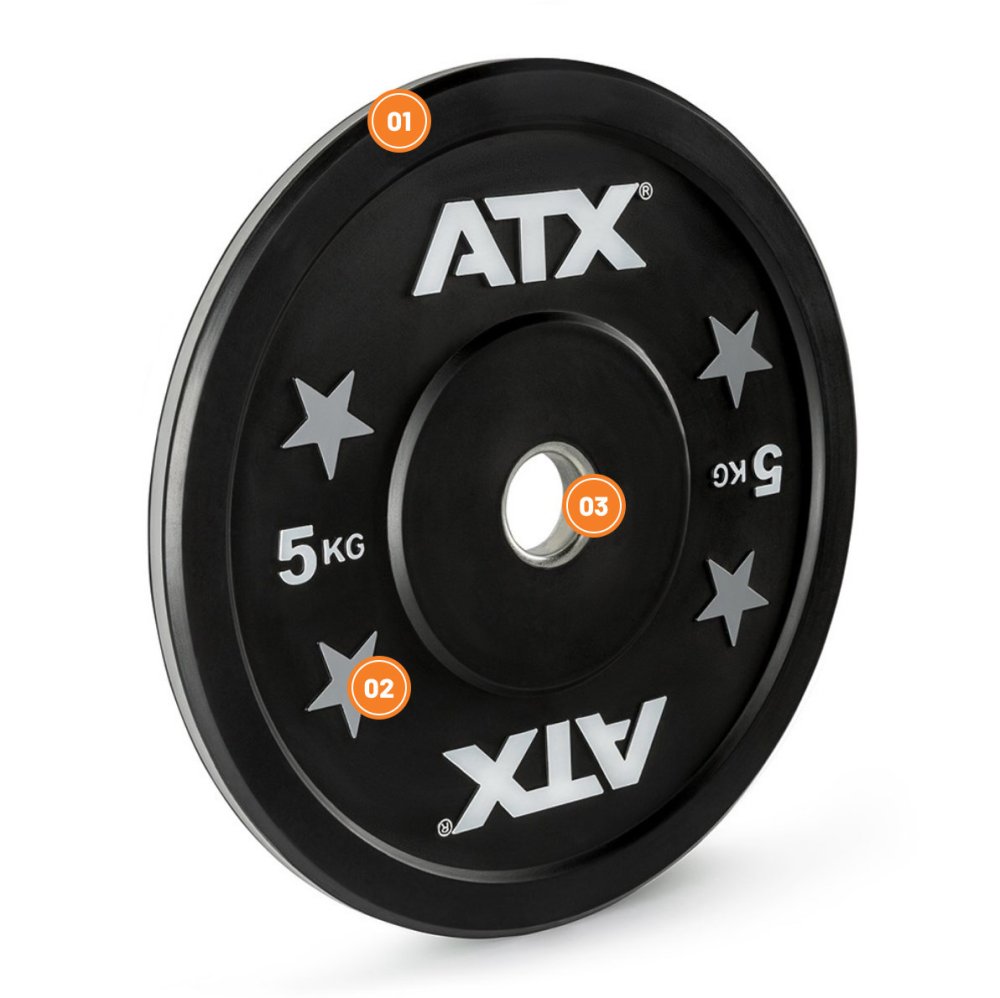 Rubberized Bumper disc from ATX weighing 5 kg with a central hole diameter of 50.8 mm and with a colour stripe to differentiate the disc according to the weight. The weightlifting discs in this range are very durable, which is important when casting them. They have been tested for over 20,000 impacts and have proven themselves for even the most intense training. Thanks to the rubber surface, impact and impact noise are significantly dampened. These discs are sure to be a design highlight in any gym. Available in several sizes: 5 kg, 10 kg, 15 kg, 20 kg a 25 kg.