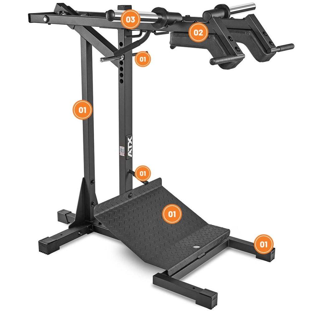 Lever Arm Squat by ATX is a multifunctional weight training machine for the development of thigh and calf muscles and is based on lever movements. Theexcellent biomechanics of the machine allow you to perform this exercise safely and effectively. The ball bearing lifting arm ensures smooth movements and the contoured pads minimize uncomfortable shoulder impingement even under high loads. Thanks to the handles on the front, the machine can also be used as a Viking Press and with the raised wide foot plate you can exercise your calves standing up. The equipment has European certification according to EN 20957 I.II.IV class H and is suitable for home use or smaller gyms.