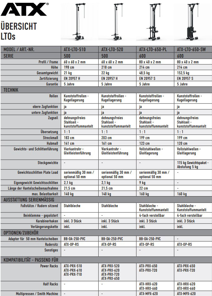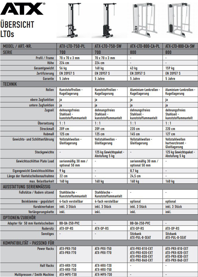 Standardně je vybavena držáky závaží o průměru 30 mm a lze jej snadno a rychle převést na 50 mm pomocí našich volitelně dostupných adaptérů. Prostřednictvím horní a dolní kladky lze provádět různá tahová cvičení. Nastavitelná kolenní podložka a opěrky nohou zajišťují bezpečné umístění při cvičení. Díky robustní konstrukci lze zařízení naložit až do 140 kg! Certifikované podle EN 20957 I.II.IV třída H.