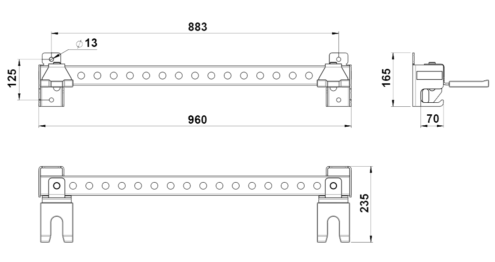 Nástěnná úložná lišta ATX LINE, řada 600