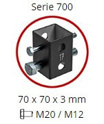 Robustní konstrukce vyrobená z ocelového jaklu o rozměrech 70 x 70 x 3 mm se zesílenými klíny