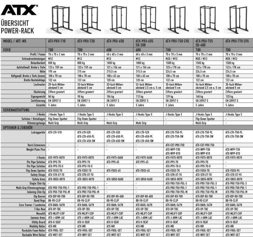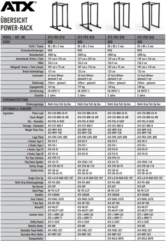 Power Rack ATX-750-SET-155 s horní a spodní kladkou obsahuje cihličky o hmotnosti 125 kg. Jedná se o extrémně stabilní a vysoce výkonnou posilovací konstrukci s celkovou výškou 225 cm. Masivní stojan se skládá z trubkové oceli o tloušťce 70 x 70 x 3 mm a umožňuje extra vysokou nosnost až do 1500 kg! Díky šířce 123 cm a hloubce 199,5 cm je Power Rack extrémně stabilní a nabízí prostor pro maximální volnost pohybu. Sloupce stojanu s 35 otvory jsou opatřeny značkami pro přesné a rychlé umístění J-háků a nouzových zásobníků. Vysoká hmotnost 329 kg podtrhuje stabilní a pevnou konstrukci. Pogumované nožičky chrání odolnost a odolnost proti skluzu. Stejně jako všechny ATX Power Racky, je PRX-750-SET-155 vyráběný podle nejvyšších standardů kvality s nejnovější plně automatickou technologií laserového řezání. Certifikován podle EN 20957 I. II. IV třída S. Pro rozšířený rozsah cvičení lze Power Rack rozšířit o další volitelné příslušenství.