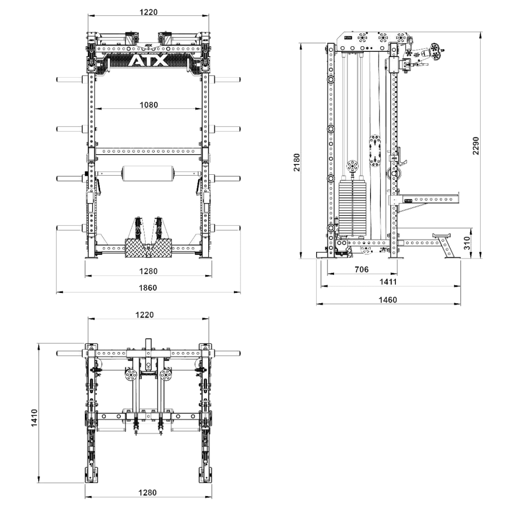 Posilovací stojan ATX LINE; Multi Pull Half Rack 2.0, závaží (2 x 110 kg)